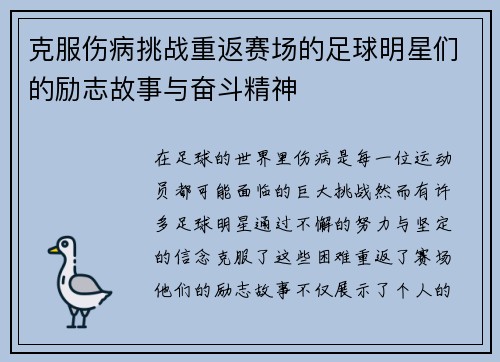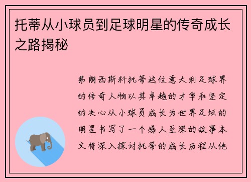 足球作为全球最受欢迎的运动之一,背后有着无数令人感动的故事和传奇人物。每一位足球明星不仅仅是个人才华的体现,更是他们所代表球队精神与荣耀的象征。本文将对“足球明星背后的故事揭秘他们所属球队的荣耀与挑战”进行深入探讨,从四个方面揭示这些球员如何在各自的职业生涯中创造辉煌,同时面临着巨大的挑战。这四个方面分别是:明星球员成长历程、团队合作精神、面对逆境时的坚韧不拔以及影响力与社会责任感。通过这些角度,...